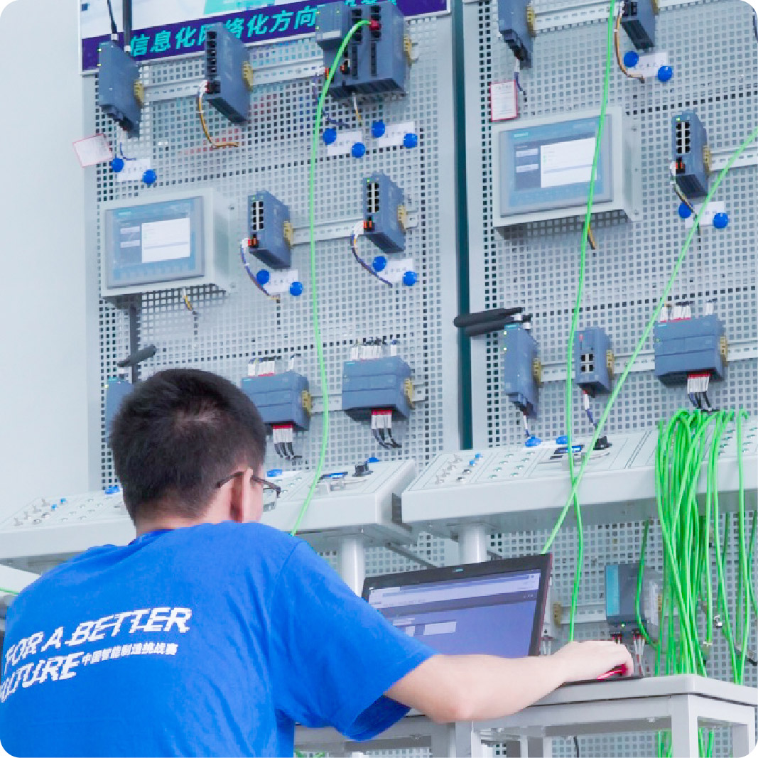 赛题以智能工厂、智能车间、智能产线中实际工业通信网络为背景,从企业真实工程项目凝练。涉及到工业交换机、虚拟局域网、工业无线通讯、工业信息安全等知识。参赛队针对项目任务要求,完成厂区布局分析、技术需求分析、网络结构设计、优化、信息安全设计、设备选型、网络结构实施、网络功能实现、通信验证、方案答辩等工作。培养参赛者综合运用自动化、通信工程等相关专业知识,解决复杂工程问题的能力。